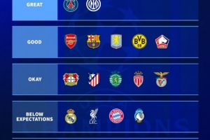 德转评价本赛季各队欧冠表现: